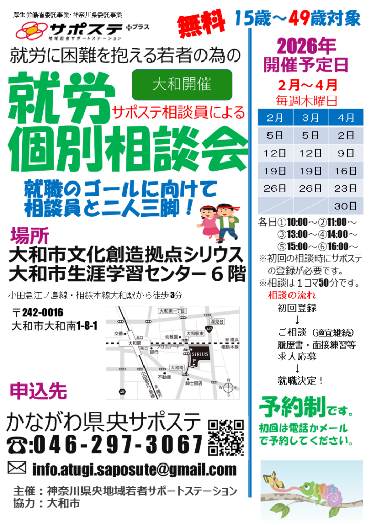 神奈川県央地域若者サポートステーション ☎ 046-297-3067