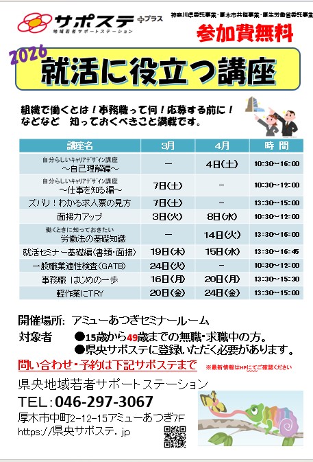 神奈川県央地域若者サポートステーション ☎ 046-297-3067