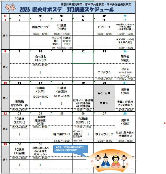 神奈川県央地域若者サポートステーション ☎ 046-297-3067
